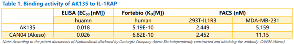 关于AK135(靶向IL-1RAP抗体)