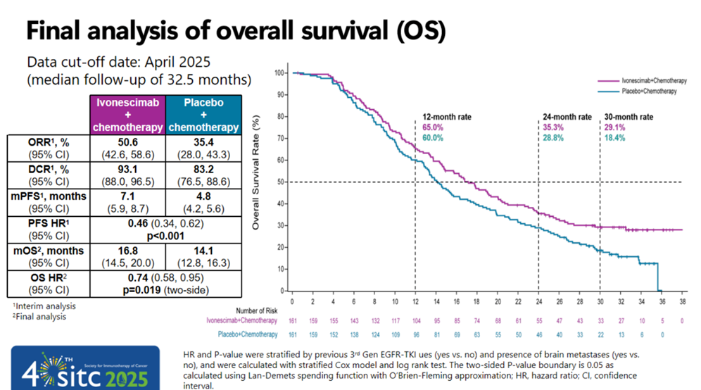 - 最终分析时,中位随访时间32.5个月时,依沃西治疗组和对照组的OS HR=0.74(P=0.019)。
